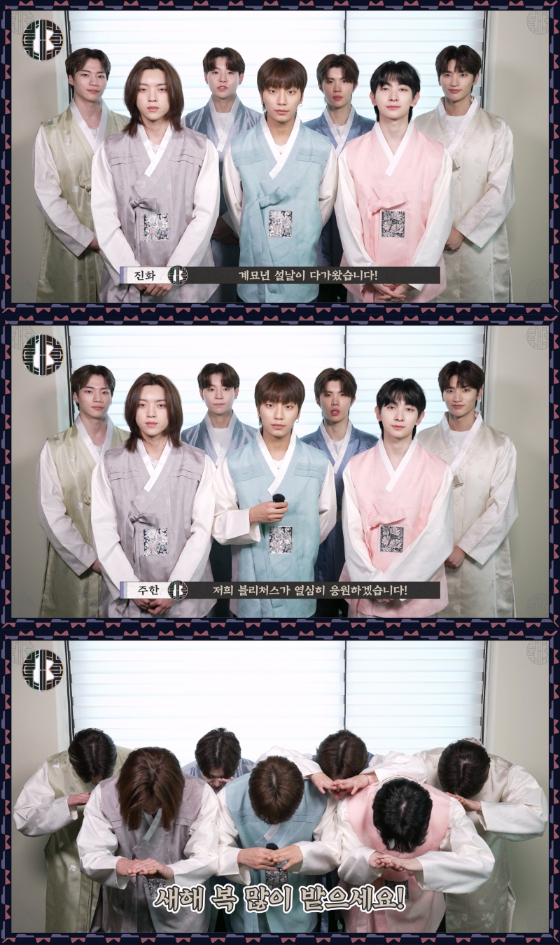 공개된 영상에서 블리처스는 색색의 고운 한복을 차려입고 "2023년 검은 토끼의 해, 계묘년 설날이 다가왔다. 다들 새해를 잘 보내고 계신지 궁금하다"며 활기찬 설 인사말을 전했다.