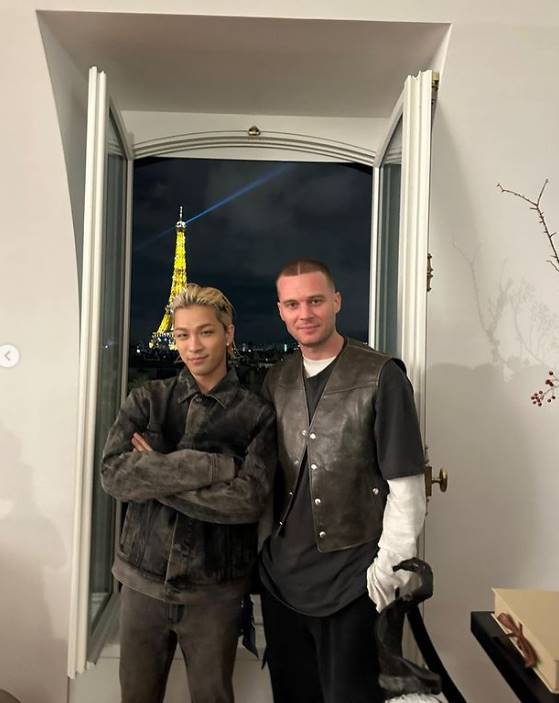 그는 지방시 크리에이티브 디렉터 매튜 M. 윌리엄스(Matthew M. Williams)와 만난 모습도 전했다. 매튜 역시 "family"라며 태양의 만남을 반가워했다.