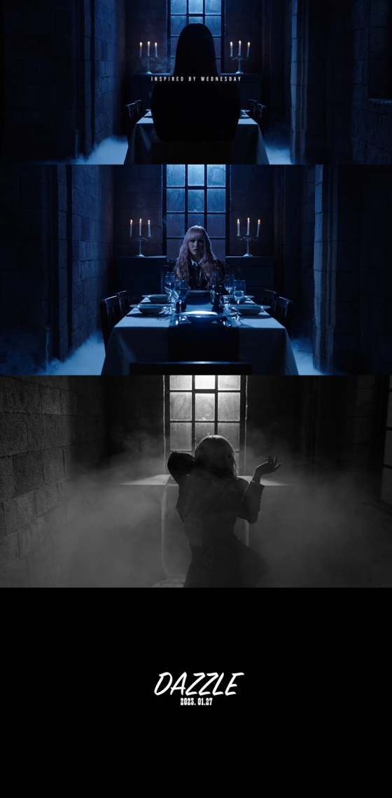 앞서 티저에서 'INSPIRED BY WEDNESDAY'라고 새로운 영상을 예고한 다즐. 이번에 공개하는 필름은 넷플릭스 '웬즈데이'에서 영감을 받아 완성한 작품이다. 어두운 색감과 구도, 연출 등과 다즐의 파워풀한 안무가 완벽하게 어우러져 현장 스태프들의 감탄을 불러 모았다는 후문이다.