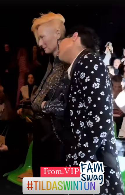 사진 속 샤넬 턱시도를 입은 그는 틸다 스윈튼의 어깨에 얼굴을 기대는가 하면, 소통하며 자유분방한 포즈를 취하고 사진을 촬영했다. 두 사람은 익살스런 표정도 보여주며 눈길을 끌었다.