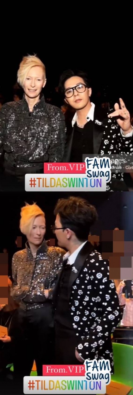 그룹 빅뱅 멤버 지드래곤이 할리우드 배우 틸다 스윈튼과 조우했다.