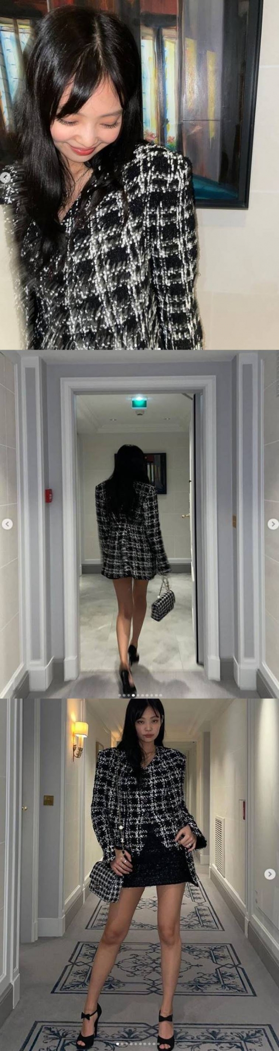 사진 속 제니는 지난 24일 파리에서 열린 샤넬 2023 SS시즌 오뜨 꾸뛰르 쇼에 참석했을 당시 머물렀던 호텔 복도에서 모델처럼 포즈를 취했다.