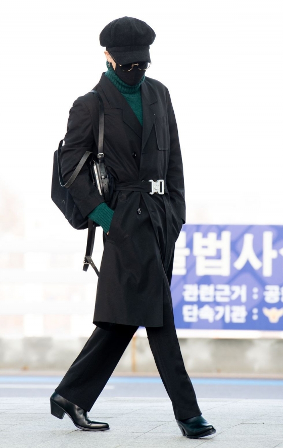 공항패션으로 독보적 존재감을 발산해온 지민은 2020년 뉴욕으로 가는 출국장에서 입었던 블랙 트렌치 코트 또한 결코 잊을 수 없는 공항 패션의 완성형으로 지금까지도 회자되고 있으며 매체 역시 레전드 룩으로 꼽았다.