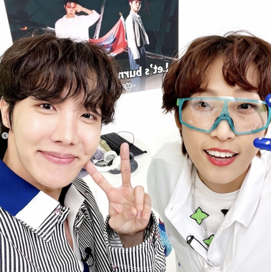 공개된 사진에는 재재와 제이홉의 모습이 담겼다. 재재는 고글과 장갑을 착용하고 해맑은 미소를 보였다. 제이홉은 재재 옆에서 브이(V) 포즈를 취했다.