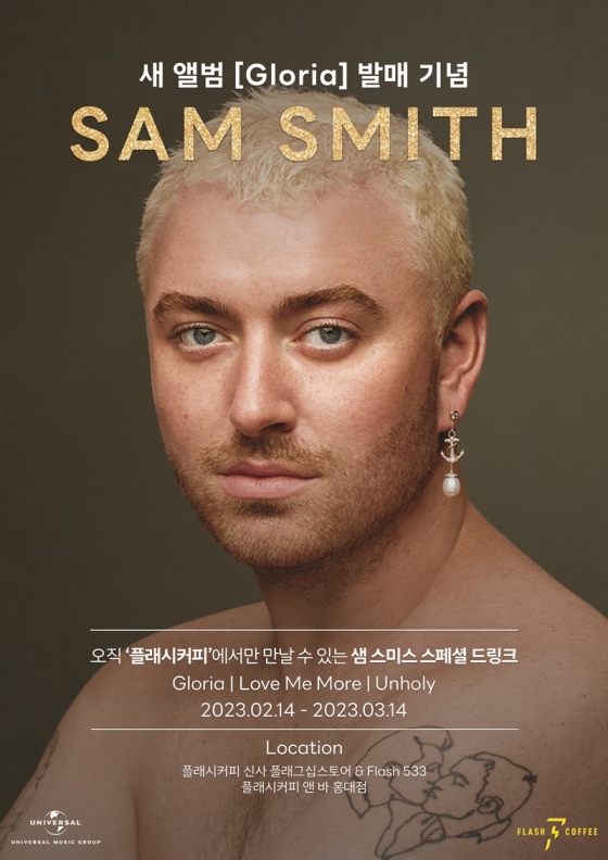 유니버설뮤직은 13일 "'Unholy'로 전 세계에서 선풍적인 인기를 끌고 있는 샘 스미스가 커피 브랜드 플래시커피와 함께 '샘 스미스 스페셜 음료 메뉴'를 출시한다"라고 밝혔다.