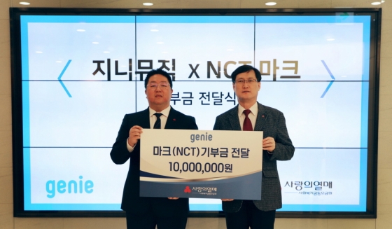 사랑의열매 사회복지공동모금회(회장 김병준)는 13일 "지니뮤직의 '올해 가장 기대되는 토끼띠 아티스트'로 선정된 마크가 1000만원을 기부했다"라고 밝혔다. 이날 서울시 중구 사랑의열매 회관에서 열린 기부금 전달식에는 지니뮤직 전략마케팅실 배대선 서비스마케팅팀장과 사랑의열매 이정윤 전략모금본부장 등 관계자들이 참석했다.