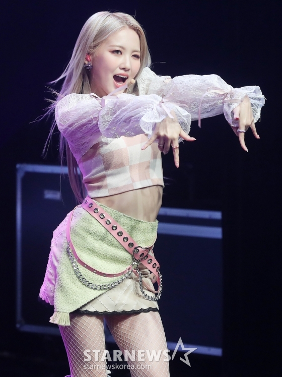 걸그룹 트라이비(TRI.BE) 소은이 14일 오후 서울 강남구 청담동 일지아트홀에서 진행된 두 번째 미니앨범 'W.A.Y(웨이)' 발매 기념 쇼케이스에 참석해 멋지 무대를 선보이고 있다.