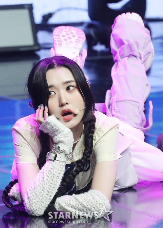 걸그룹 트라이비(TRI.BE) 미레가 14일 오후 서울 강남구 청담동 일지아트홀에서 진행된 두 번째 미니앨범 'W.A.Y(웨이)' 발매 기념 쇼케이스에 참석해 멋지 무대를 선보이고 있다.