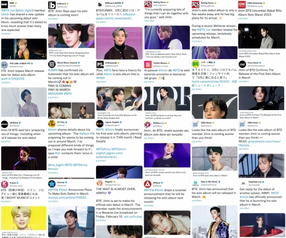 지민이 지난 10일 팬 커뮤니티 위버스를 통해 팬들과 소통하며 오는 3월 첫 솔로 앨범 발매를 예고하고 앨범 발매에 맞춰 팬들과 함께 할 많은 것을 준비하고 있다는 반가운 소식을 전하자 전 세계 언론이 발 빠르게 보도에 나섰다.