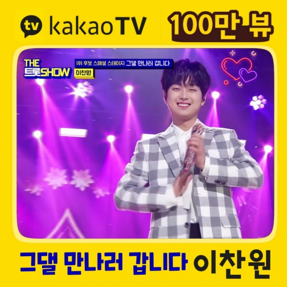 가수 이찬원의 감미로운 목소리가 빛나는 '그댈 만나러 갑니다' 무대 영상이 카카오TV에서도 '밀리언뷰'를 달성했다.