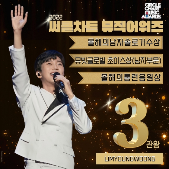 임영웅은 2월 18일 서울 올림픽공원 KSPO DOME에서 열린 '써클차트 뮤직 어워즈 2022'에서 올해의 남자 솔로 가수상을 비롯해 3개의 트로피를 거머쥐었다.