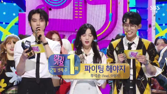 이날 부석순은 '파이팅 해야지 (feat. 이영지)'로 뉴진스의 'Hype boy' 'OMG'를 꺾고 1위에 올랐다. '파이팅 해야지'는 발매와 동시에 아이튠즈 송 차트에서 아르헨티나, 인도네시아, 일본, 싱가포르 등 총 24개 국가/지역 1위를 포함해 총 33개 국가/지역 TOP 10에 오른 바 있다.