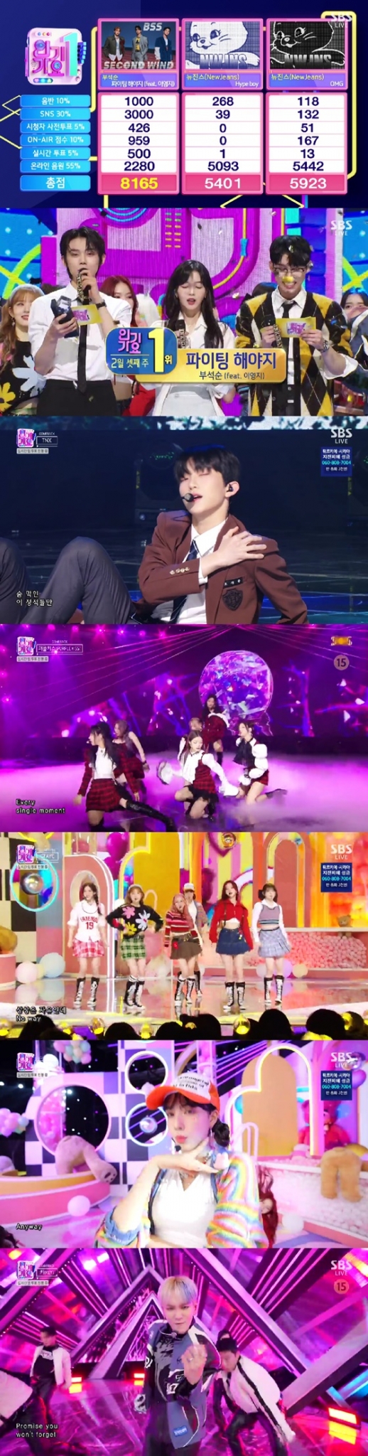 그룹 세븐틴 유닛 부석순이 뉴진스를 꺾고 '인기가요' 1위를 차지했다.