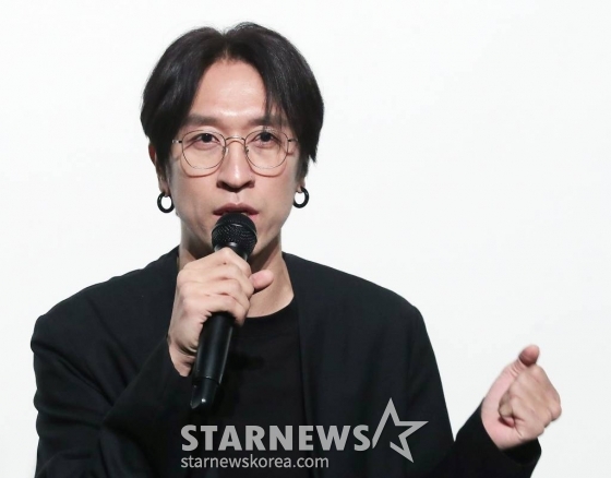 가수 백성현(코요테 빽가)이 20일 오전 서울 강남구 청담씨네시티 엠큐브에서 진행된 첫 EP 앨범 '큐어'(CURE) 발매 기념 음감회에 참석해 인사말을 하고 있다. '큐어'에는 더블 타이틀곡 가창곡 '바람이 달빛이'와 연주곡 'Close My Eyes'를 비롯해 총 8곡이 담겼다. 2023.02.20 /사진=김창현 기자 chmt@