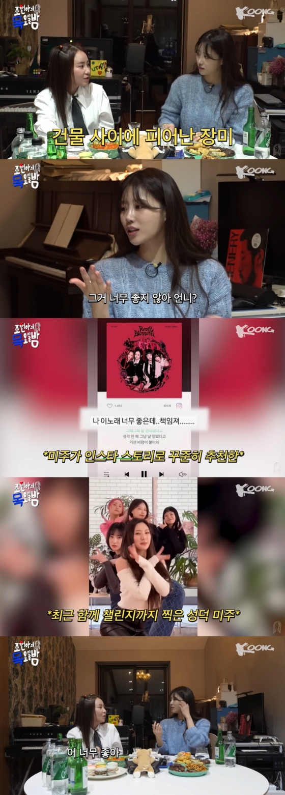또한 이미주는 "나 이 노래 듣고 진짜 울었다. 위로를 받았다. 그래서 진짜 좋아한다"라며 '건물 사이에 피어난 장미'를 극찬했다.