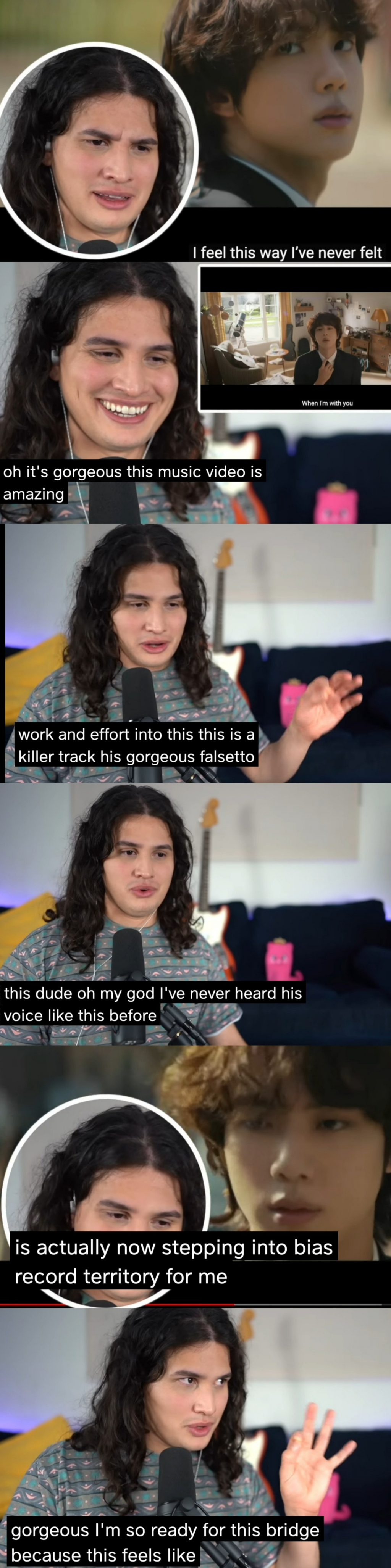 가사의 "When I'm with you. There is no one else." 부분에서는 팔세토가 아름답다고 연신 감탄했으며, "이곡 진심으로 끝내준다. 오 진짜 여기서 이런 목소리 처음 들어봐"라며 극찬했다.