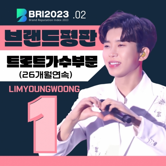 임영웅은 2월 26일 한국기업평판연구소가 발표한 트로트 가수 브랜드평판 2023년 2월 빅데이터 분석결과, 1위를 차지했다.