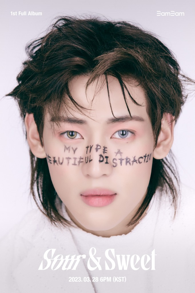 'Sour' 버전 포스터 속 뱀뱀은 진한 메이크업으로 강렬한 인상을 주며 눈길을 사로잡았다. 다소 심각해 보이는 표정을 짓고 있는 반면, 한쪽 볼에는 상반된 분위기의 스마일 타투가 그려져 있다. 'Sweet' 버전에서는 신비로운 느낌의 오드아이와 함께 'MY TYPE A BEAUTIFUL DISTRACTION'이라는 영문이 얼굴에 적혀있어 궁금증을 자아낸다.