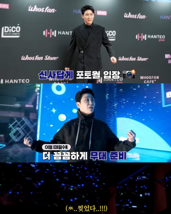 공개된 영상에는 꼼꼼하게 무대체크를 하는 영탁의 모습과 본무대 같은 리허설, 신사다운 포토월, 수상자 대기석에서 무대를 즐기는 모습, 시상식 인터뷰 등이 담겼다.