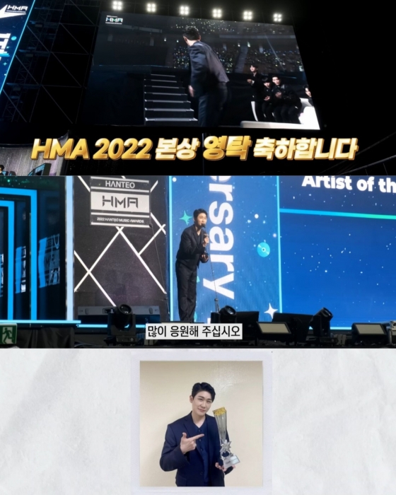가수 영탁이 한터뮤직어워즈를 감동의 '코블' 물결로 물들였다.