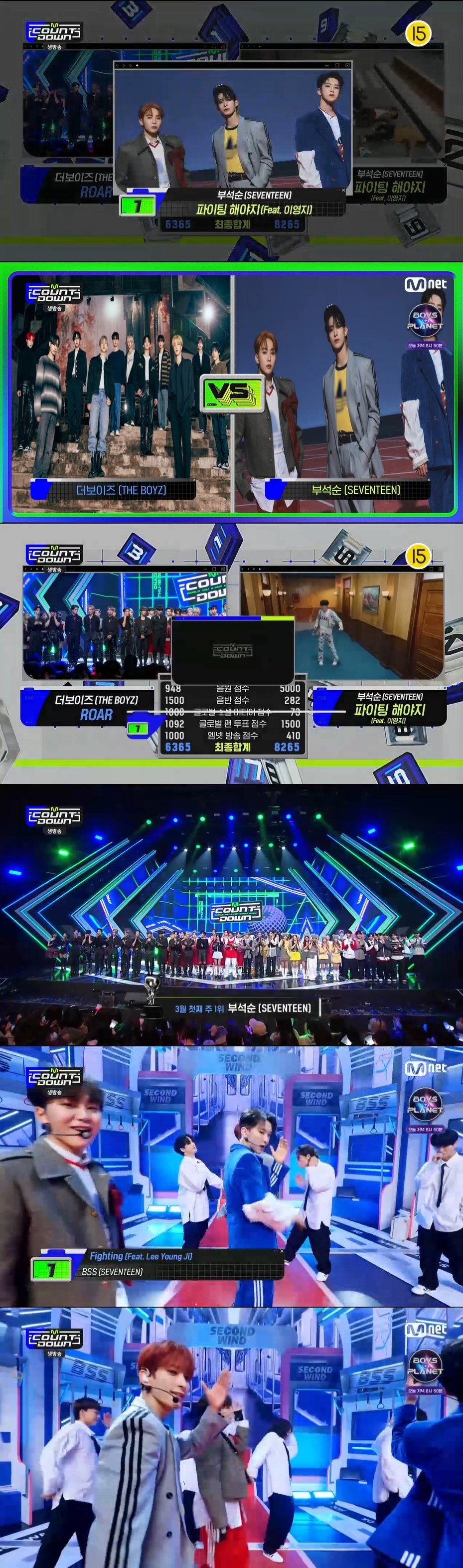 그룹 세븐틴의 스페셜 유닛 부석순(승관, 도겸, 호시)이 더보이즈를 꺾고 '파이팅 해야지(Feat.이영지)'로 출연 없이 '엠카운트다운'1위를 차지했다.