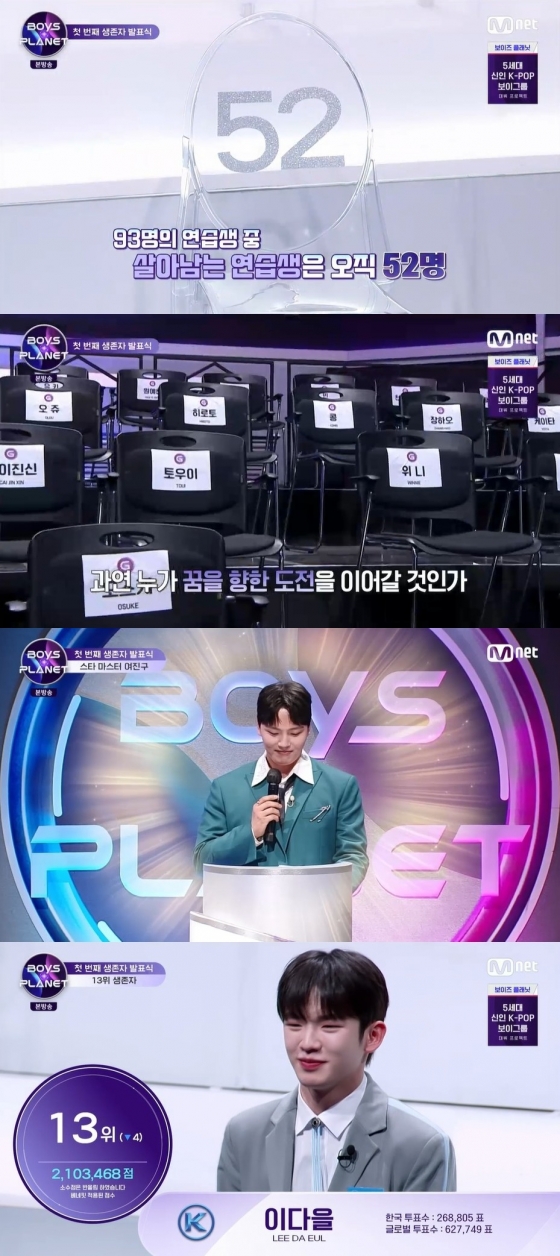 '보이즈 플래닛'의 1차 생존자 발표식이 공개됐다.