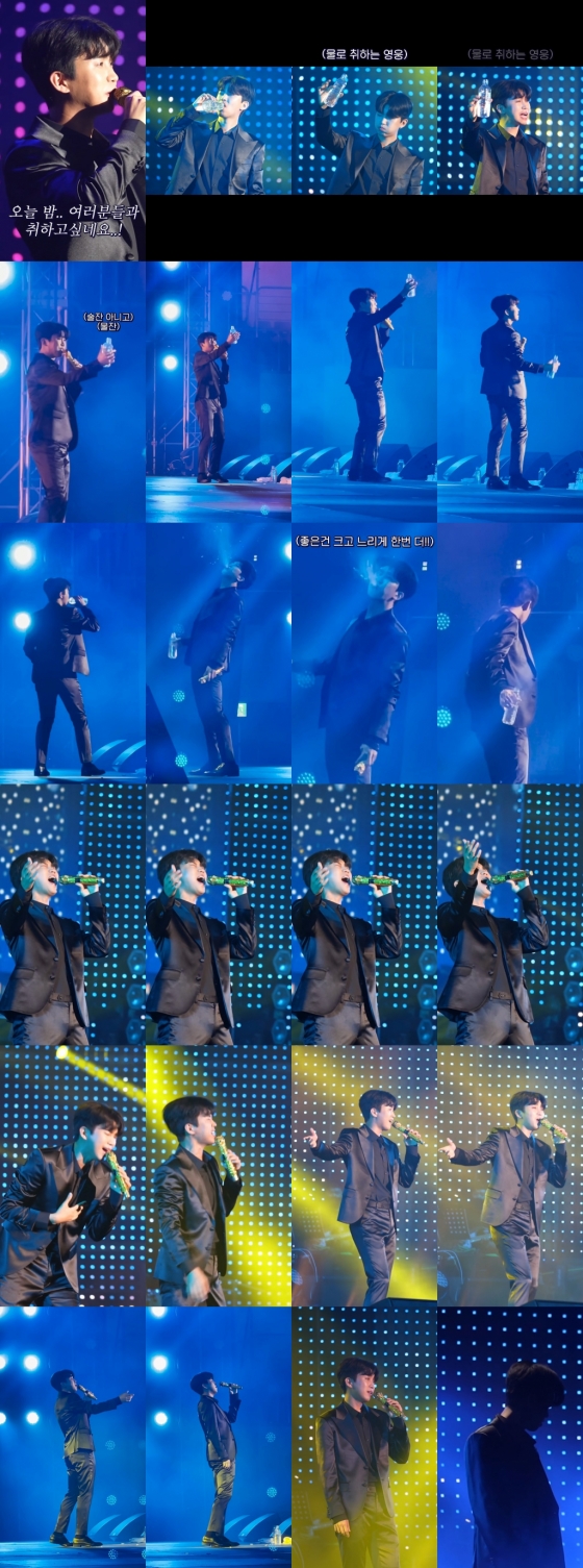 2분 33초 분량의 영상에서 임영웅은 물로 술에 취한 듯 탁월한 연기력을 펼치며 '서울의 달' 무대를 꾸몄다.