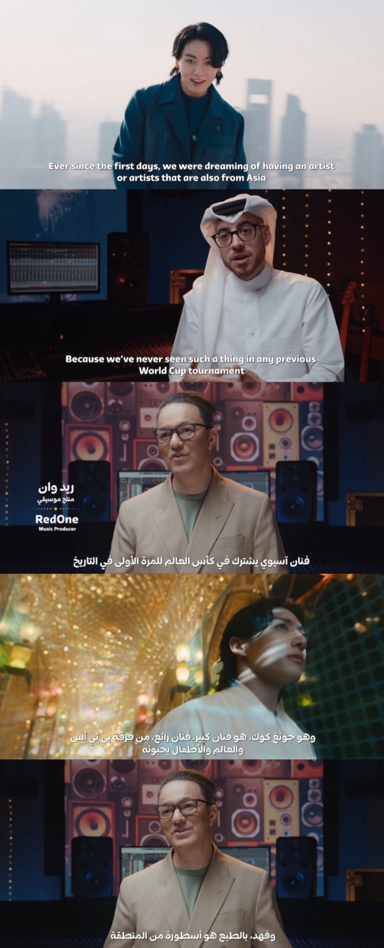 이어 "이 두 문화는 월드컵에서 전혀 전개되어 지지 않았었다. 예상치 못한 조합이었지만 되게 완벽한 조합이었다"며 K팝 대표 아이콘 정국과 2022년 월드컵 개최국인 카타르 유명 가수가 이뤄낸 환상적인 캐미에 흡족함을 표했다.