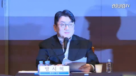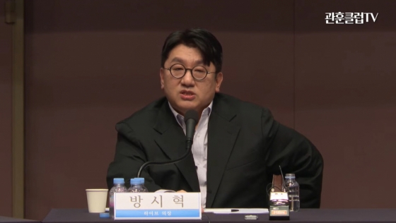 방시혁 하이브 의장(이하 방 의장)은 15일 오전 서울 중구 프레스센터에서 진행된 관훈포럼에 참석했다.