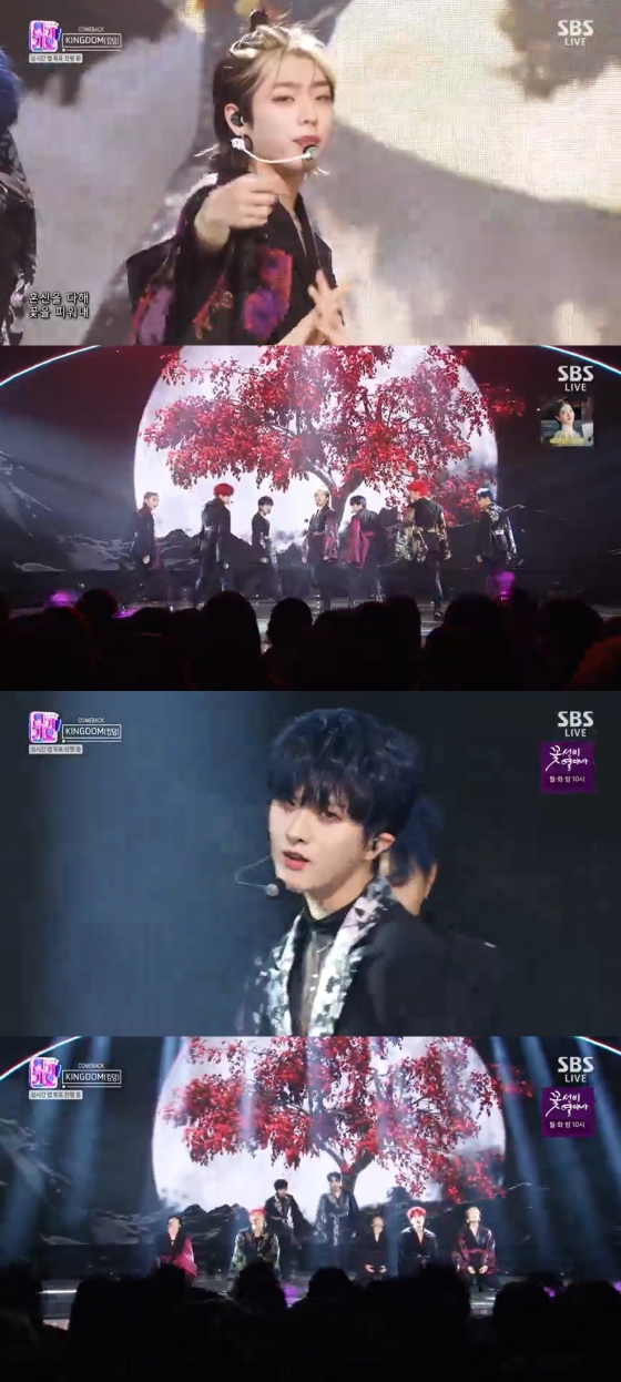 킹덤(훤, 자한, 단, 아서, 무진, 루이, 아이반)은 26일 오후 방송된 SBS '인기가요'에 출연해 여섯 번째 미니앨범 'History Of Kingdom : Part Ⅵ. MUJIN(히스토리 오브 킹덤 : 파트 6. 무진)' 타이틀곡 '혼(魂; Dystopia)' 무대를 선보였다.