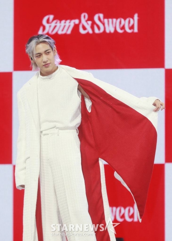 뱀뱀은 28일 오후 서울 용산구 한남동 블루스퀘어 마스터카드홀에서 정규앨범 '사워 앤드 스윗'(Sour & Sweet) 발매를 기념해 쇼케이스를 열었다.