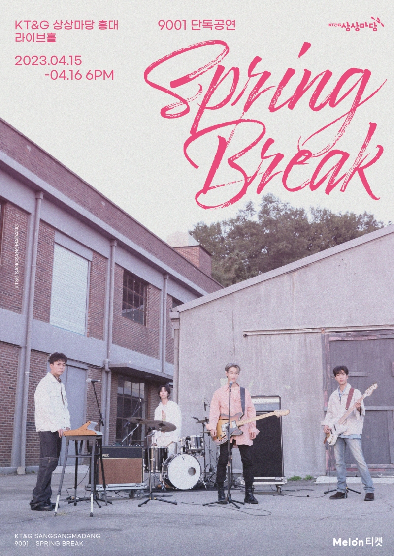 소속사 아뮤즈엔터테인먼트에 따르면 9001은 오는 4월 15일과 16일 양일간 서울 KT&G 상상마당 홍대 라이브홀에서 단독 콘서트 '스프링 브레이크(Spring Break)'를 개최하고 팬들과 만난다.