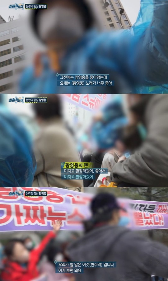 황영웅은 "저에 대한 방송 게시판에 글을 올려주시거나 방송국에 항의를 해주시거나 저를 욕하는 사람들과 싸워 주시는게 감사해야 마땅 할 일이지만, 지금의 저에게는 그 조차도 너무나 괴로운 일이 되는 것 같다"며 팬들이 '실화탐사대' 등 자신의 논란을 다룬 방송에 대해 항의를 자제해 달라고 부탁했다.