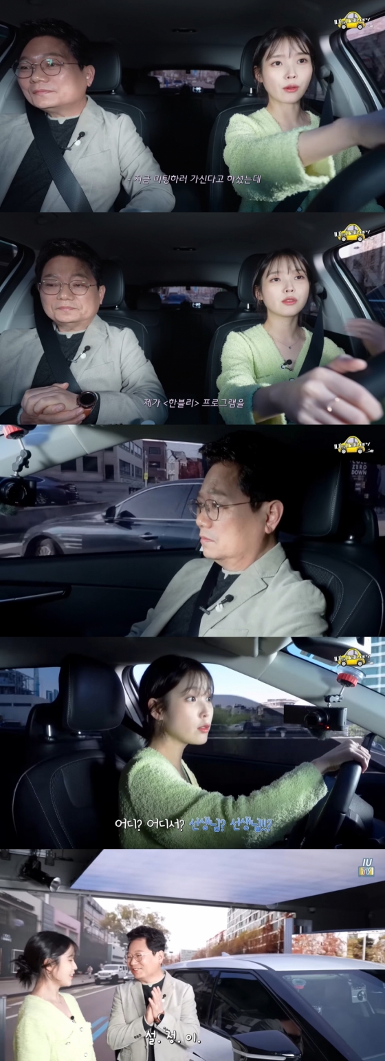 아이유는 "오늘 내가 이렇게 운전석에 앉아있는 모습을 보니까 낯설지 않냐. 몇 년 전에 한 좌우 반전 아니다. 실제로 운전석에 앉아있는 거다. 리얼 운전석이다. 내가 골목길에 잠깐 비상등을 켜놓고 기다리고 있다. 팔레트 처럼 음악 얘기 나누면서 토크하는 거랑 별개로 노래를 부담스러워하는 분들도 계시고 얼마 전에 면허를 땄다. 손에 땀이 난다"라고 말했다.