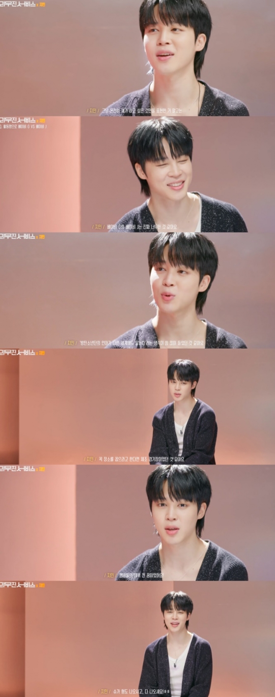 '방탄소년단의 마지막 공연을 한다면? 남극 vs 노래방'이란 질문도 나왔다. 지민은 "되게 극단적인데 남극에서 하면 뭔가 있어보이긴 하는데 노래방에서 하면 편할 것 같기도 하다. 나는 노래방에서 하는 것도 괜찮을 것 같다"고 답했다.