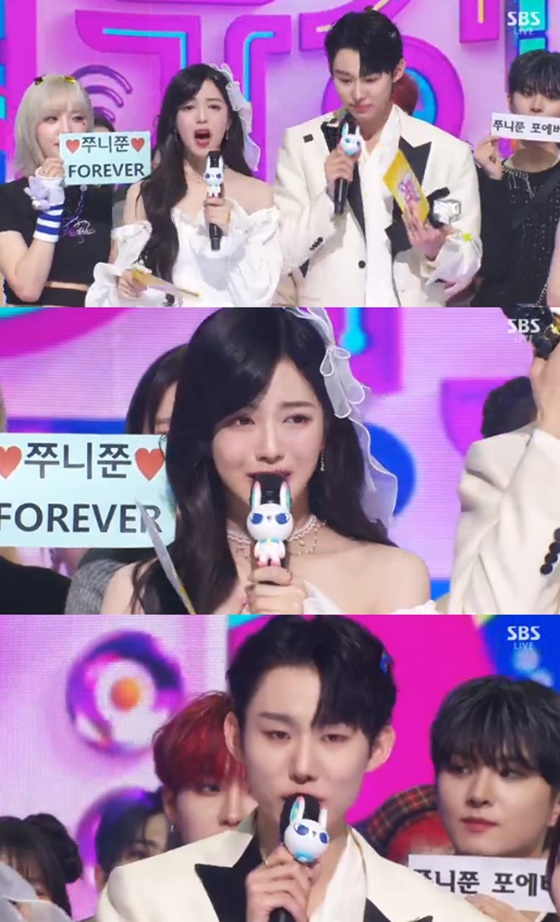 [최혜진 스타뉴스 기자] '인기가요' 뉴진스가 1위를 차지한 가운데 MC 노정의, 서범준이 눈물 섞인 작별 인사를 전했다.