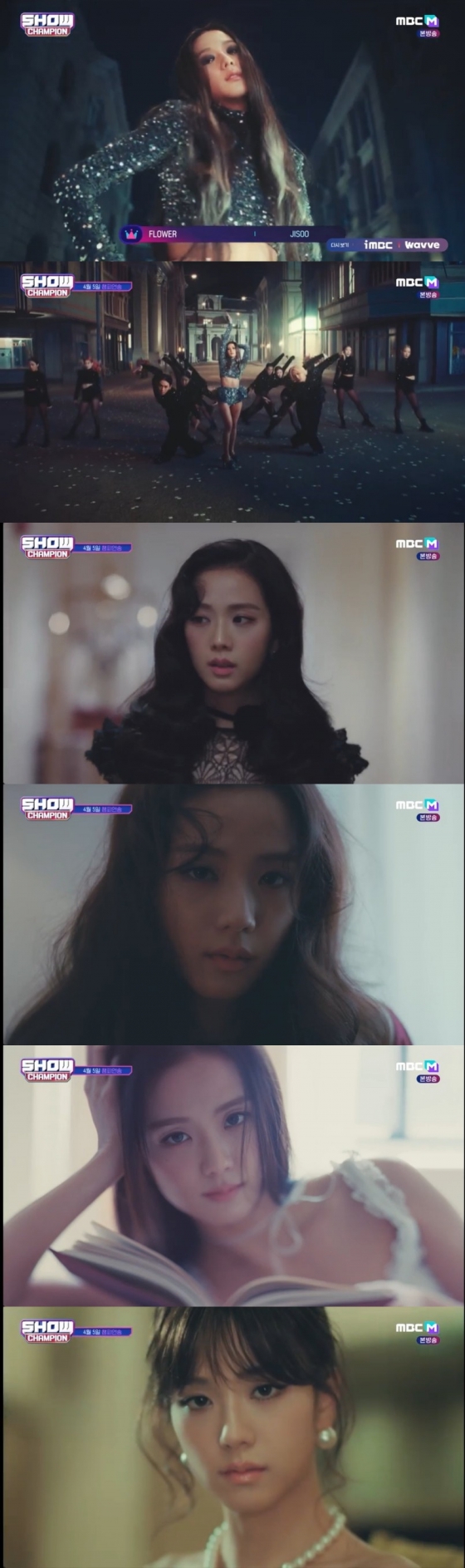 5일 방송된 MBC M '쇼! 챔피언'에서 지수가 첫 솔로 앨범 타이틀곡 '꽃(FLOWER)'으로 첫 1위를 차지했다.