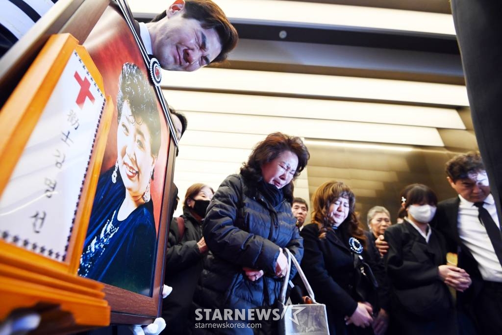 조사를 맡은 이자연은 "사랑하고 존경하는 선배님 수십년간 노래처럼 떠낼 땐 말 없이처럼 떠나가. 호탕한 웃음 못본다는 것 믿어지지 않아. 계신곳마다 웃음꽃. 파워풀한 가창력과 열정으로 세월지나도 현역지켜내"라고 조사를 시작했다.