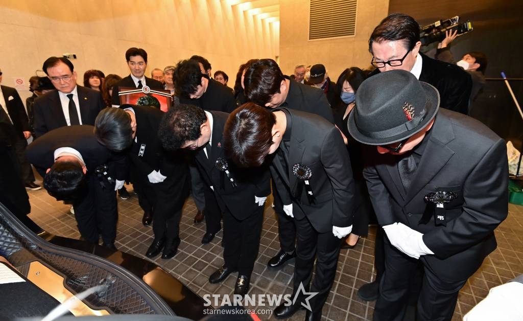 함께 추도사를 맡은 알리는 "안개처럼 떠나버린 선배님 처음 비보를 접하고 믿을 수 없었다. 지금도 눈에 선하다. '불후의 명곡' 이봉조 편에서 선배님을 만났는데 제 노래를 듣고 눈물짓던 모습이 기억난다. 힘찬 목소리가 나를 닮았다며 건강관리 잘하라고 하셨다. 그동안 업적도 많이 남기셨고 열정도 대단하셨다. 선배님 열정을 닮고 싶다. 후배로서 부족한 점이 많지만 빈지리를 조금이라도 메울 수 있도록 노력하겠다"라고 전했다.