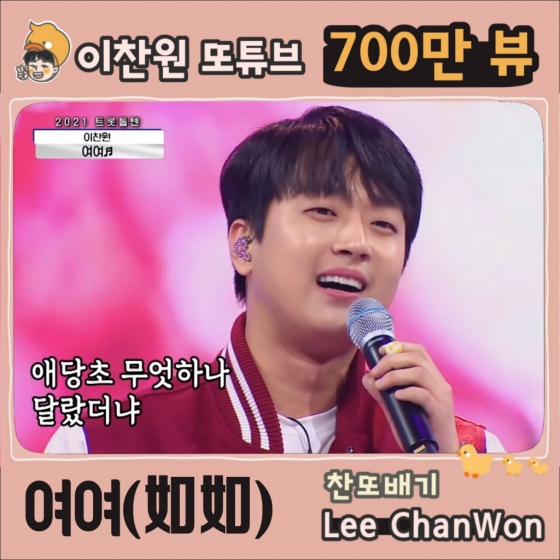 [문완식 스타뉴스 기자] 가수 이찬원의 '여여' 무대가 700만 뷰를 달성하며 인기를 빛냈다.