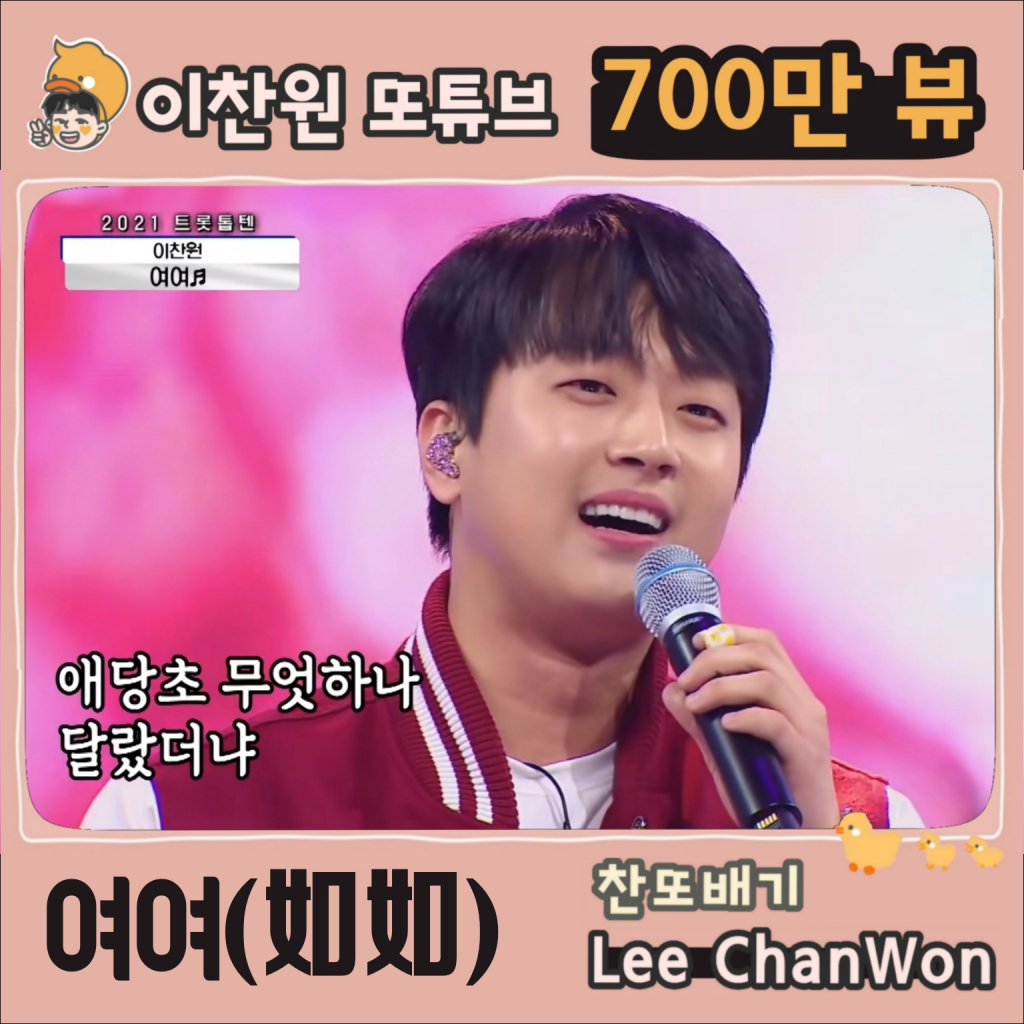 이찬원이 2021년 2월 6일 공식 유튜브 채널에 공개한 '여여' 무대 영상은 4월 10일 기준 조회수 700만 뷰를 넘어섰다.