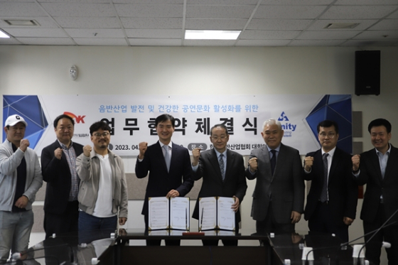 음산협과 트리니티는 지난 3일 서울 마포구 상암동 음산협 대회의실에서 공연, 방송, 음반 제작 발매 등 협력 사업에 대한 업무 협약을 체결했다.