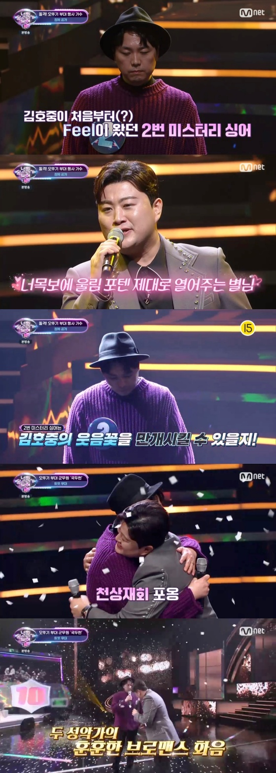 한편 김호중은 2번 싱어의 정체를 알지 못한 채 변진섭의 '너에게로 또다시'를 노래했다. 이후 2번 싱어가 노래를 불렀다. 2번 싱어는 성악 실력자로 이를 맞춘 김호중이 기쁨을 만끽했다. 35세의 늦은 나이에 성악에 도전한 2번 싱어는 "오늘 '너목보'를 보시는 분들이 도전하실 수 있었으면 좋겠다"라고 전했다. 김호중은 "어쨌든 승리자는 저다"라며 기뻐했다.