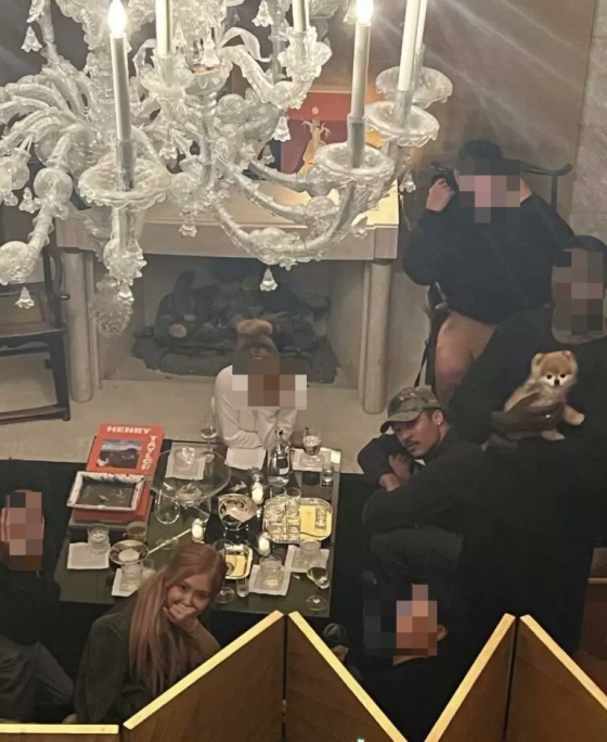 해당 사진 속엔 에바 차우를 비롯해 다수 사람이 웃고 즐기며 포즈를 취하고 있다. 특히 사진 하단에 위치한 로제가 입을 가리고 웃으며 모임을 즐기고 있다.