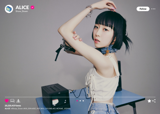 14일 자정 소속사 아이오케이 컴퍼니는 공식 SNS 등을 통해 앨리스의 싱글 앨범 'SHOW DOWN'의 채정 콘셉트 화보를 공개했다.
