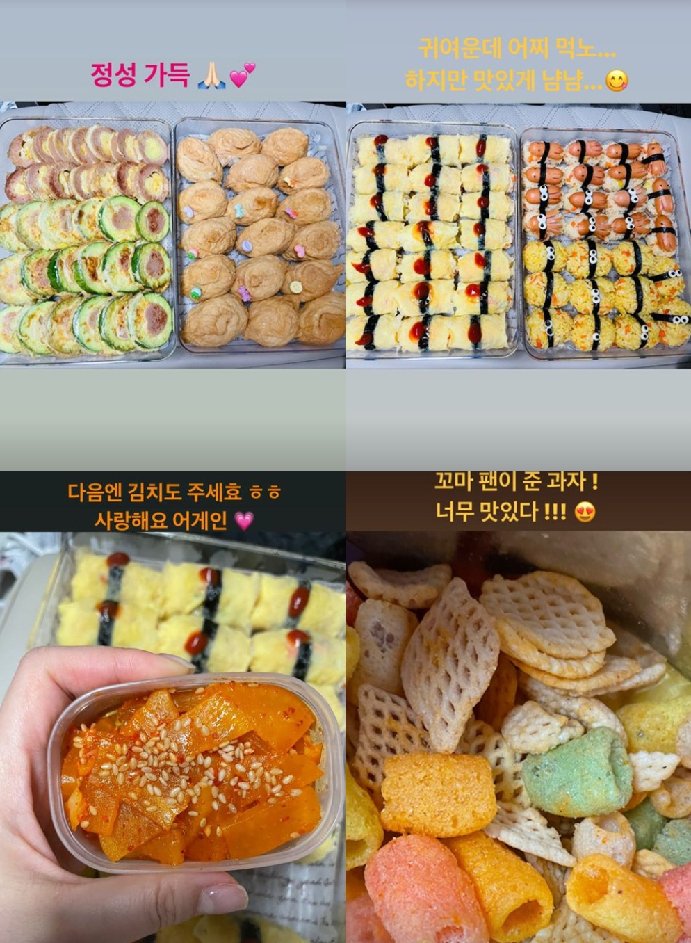 또한 과자 사진과 함께 "꼬마 팬이 준 과자! 너무 맛있다"란 글을 덧붙였다.