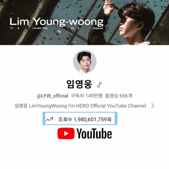 가수 임영웅이 공식 유튜브 채널 총조회수 19억 8000만 뷰를 달성했다.