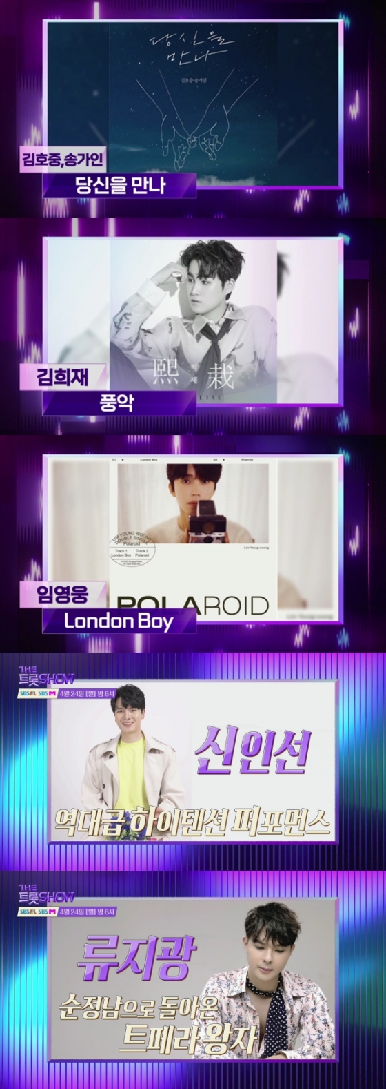 24일 저녁 8시에 생방송으로 펼쳐지는 SBS FiL과 SBS M '더 트롯쇼'에서는 2주 연속 1위를 차지한 김희재와 김호중&송가인, 임영웅이 1위 경쟁을 펼친다.
