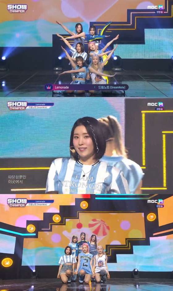 드림노트는 26일 방송된 MBC M 음악프로그램 ' 쇼! 챔피언'에 출연해 다섯 번째 싱글 'Secondary Page'(세컨더리 페이지) 타이틀곡 'Lemonade'(레모네이드) 무대를 선보였다.