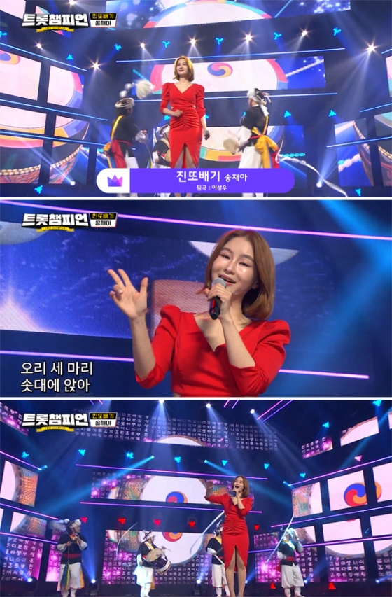 '트롯챔피언' 송채아, 사물놀이와 '진또배기' 신명나는 매력 과시
